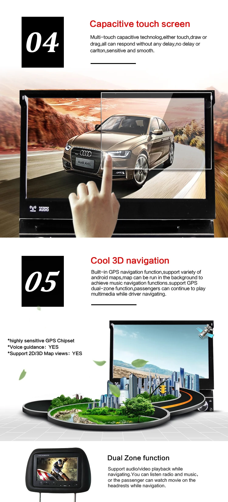 Note: We promise that our products are all authentic. We aim to offer the best product and service to customer. If you're in any way dissatisfied with your purchase, please connect with us before leaving a low score for Detailed Seller Rating (DSR), and please always contact us before opening a dispute. We are committed to ensuring that you are completely satisfied with every transaction. Language: English German French Italian Spanish Portuguese Russian Polish Turkish Arabic Korean Japanese Danish Dutch Swedish Chinese Hebrew FREE MAP!!!!!!(install in innand) High configuration, Reasonable price.Professional pre-sales and after-sales service Run pure android 6.0 sytem, CPU: QuadCore 1024*600 Resolution Built-in 4G function, 2G RAM 16G ROM Android phone mirroring by WIFI and Airplay for Android phone Bulit-in WiFi, Support 3G/4G/Wifi hotspot sharing network from your phone Support Steering Wheel Control, Support ELM327 OBD2, Support Subwoofer Bulit-in Bluetooth for hand free phone call, display phone book, 9 EQ Equalizer for music, AM/FM Radio RDS Data System Shipping Note 1. Usually process orders in the next 24 hours after paid, it is better you'll check emails during this time if we have other information needed from you. 2. We can't deliver toP.O Box& can't deliver without receiver's phone No. 3. Please make sure the shipping address is same as filled in aliexpress order. 4.Brazil customersplease tell your tax no. (CNPJ NO. or CPF NO.) if choose DHL or FedEx. 5.Russia customersplease give the receiver's FULL NAME. 6.Germany& Europe customers, please provide the EORI no. if choose "FedEx" Shipping. 7.Remote area feeexcluded, for addresses listed in the Remote areas on DHL/Fedex website, will be charged an extra US$35. Import Tax We are NOT liable for ANY import tax, custom fee or customs delay. If the parcel is return back to us due to the buyer's refusal to pay the above fees, we would NOT resend the parcel until the buyer complete those fees and pay ALL the return and resend cost. Buyer can not cancel the order or request refund based on the above reason. We will try our best to help our buyers to minimize the risk of paying the taxes. As our experience, 90% can reach to the buyer without paying any taxes, such as stating the item as sample or gift, but you still find the price is lower than standard even you are chosen to pay the customs! Return and Refund All items are brand new straight from the factory. In case you receive a faulty item, please contact us within 3 days after sign on the receipt. We will refund or replace it. Return within 7 days after receipt can be refund (exclude shipping freight) Return within 20 days after receipt can be replaced. Return within 1 year from the purchase date can be repaired. It is the customers' responsibility to pay for return postage and ship the item back to us. We will send it back at our cost. All returns must be confirmed by our after service staff, we are not liable for any return package without prior notice. For non-defective returns, there will be administrative fee applied. Warranty ONE Year Factory Warranty(accessories not included). Warranty will be voided as of: (1) Damage caused by: Undue wear & tear, dirt, misused, improper installation or operation, neglect, accident. (2) Any damages caused by improper packaging when buyers return the item to us. (3) If the item was disassembled or repaired by unauthorized person. Feedback Customer's satisfactory is our ultimate goal. If you are satisfied with our products and service, please leave us5 stars feedback. If you have problem or question please contact us before open a dispute or leaving any type of feedback. All messages or emails will be answered within one business day. If you do not receive our reply, please kindly re-send your email or complaint to our manager.